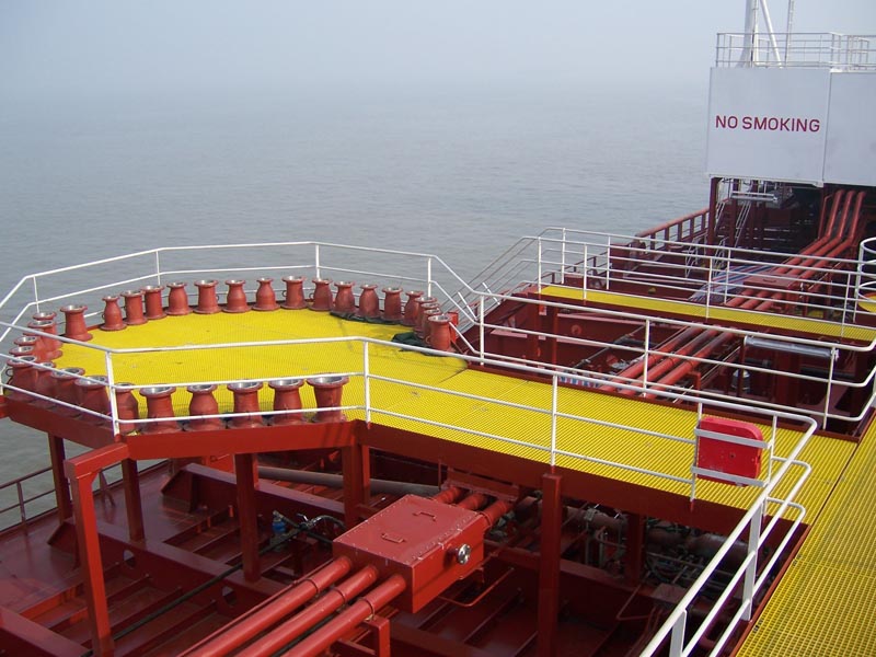 船用钢格板是专门为船舶制造行业量身定做的钢格板产品。由于船舶工作环境恶劣,船体要受海水的化学腐蚀、电化学腐蚀和海生物、微生物的腐蚀。该产品的设计、生产及验收均需要严格执行《中华人民共和国-船用钢格栅板》CB/T608-1998标准的规定。同时对于船用钢格板的选材、加工工艺、焊接工艺、包边扁钢和扭绞杆的规格、固定板焊接、热镀锌锌层厚度都有着严格的要求。产品应用于各类船舶的机炉仓通道、甲板通道、货仓平台、烟囱平台、驾驶室平台等场合。